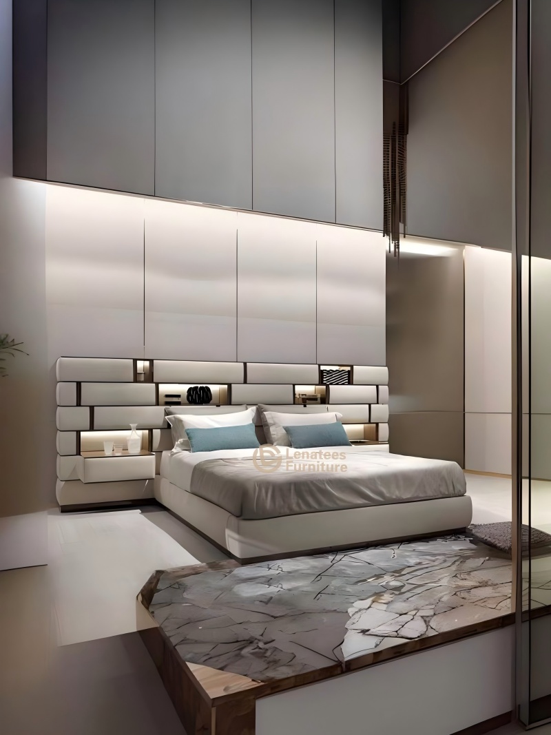 O hardware selecionado com o cromo de aço inoxidável 304 é combinado com sacolas macias de couro de grão superior/aveludação importadas para criar um protagonista do quarto que combina textura industrial com uma experiência confortável.
