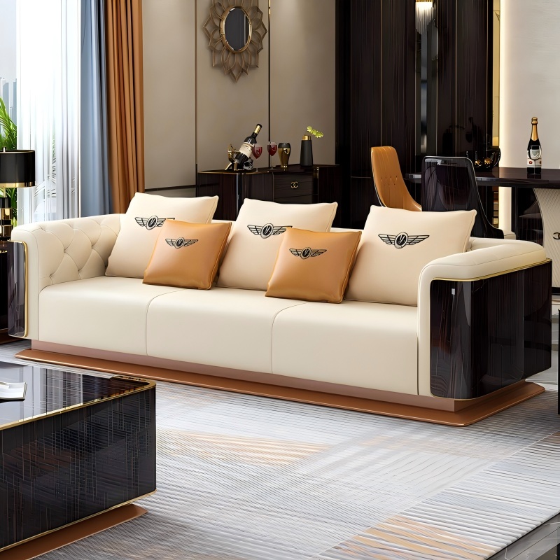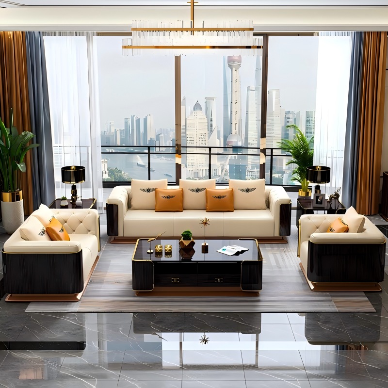 O design de combinação gratuito modular permite que você combine livremente o sofá principal + espreguiçadeira Longue + um único assento para atender às necessidades sociais de 3-8 pessoas. O couro italiano italiano importado é combinado com finas pernas de metal, apresentando uma estética de luxo leve contemporânea.